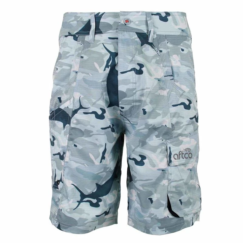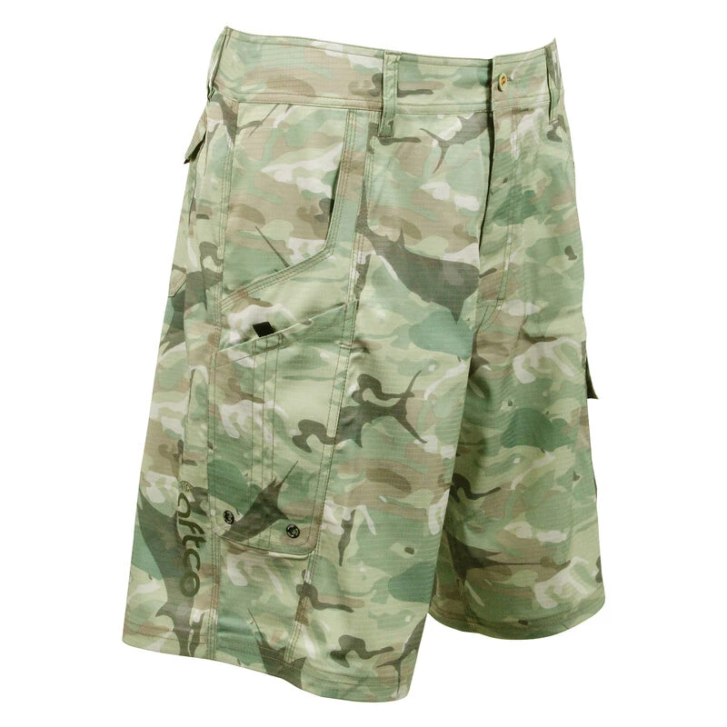 Meet the next generation of AFTCO shorts. With a longer outseam than our original fishing short, the Tactical camo fishing short prominently features an exclusive AFTCO fish silhouette hidden within a camo print. As with our Stealth shorts, the Tactical camo short sports AFGUARD stain resistance, AFLEX 2-way stretch and AFBLOCK sun protection