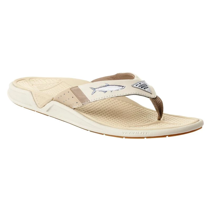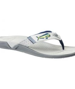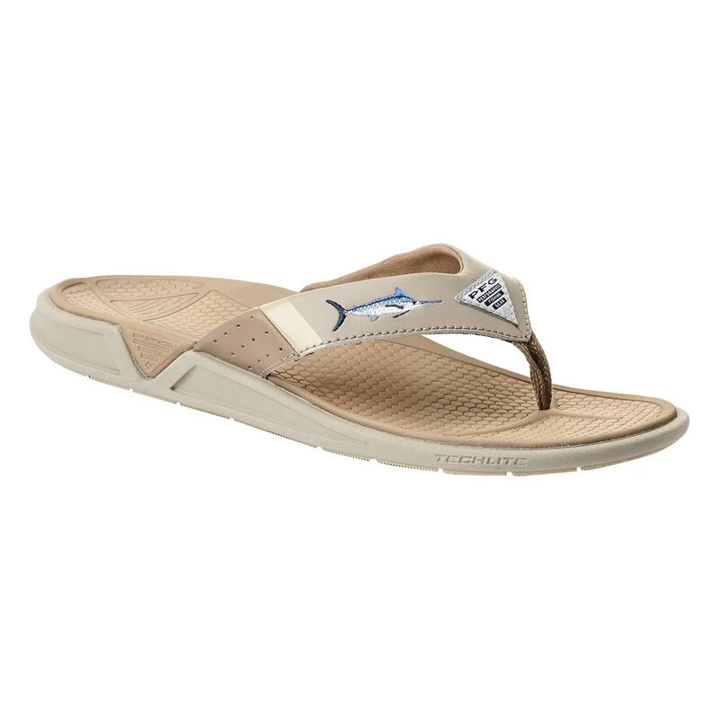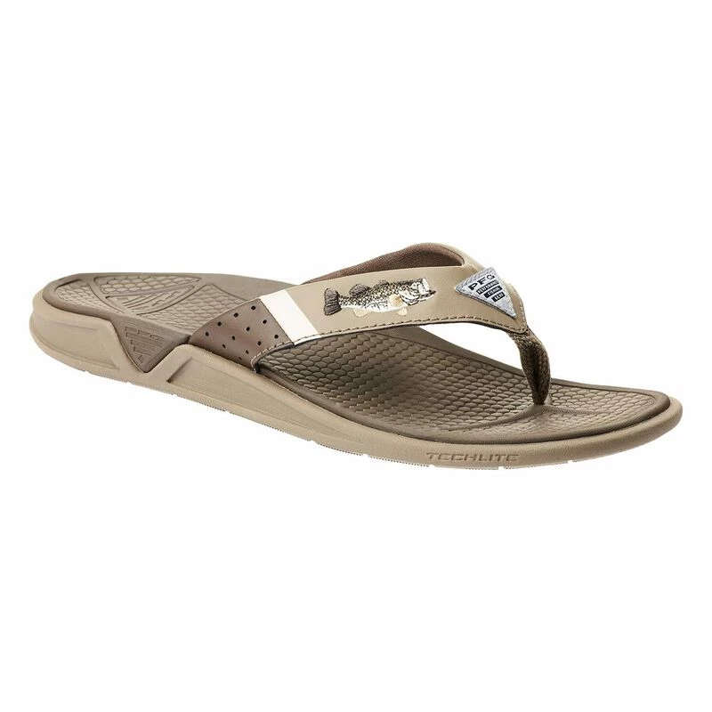 The Fish Flip PFG Flip-Flop Sandals provide superior protection, support, and traction for the most extreme offshore experiences. This sandal gives you the best in waterproof protection, Blood n Guts gives stain resistant treatment, and the Vibram, non-marking WAVEGRIP sole provides incomparable grip for various water sports.