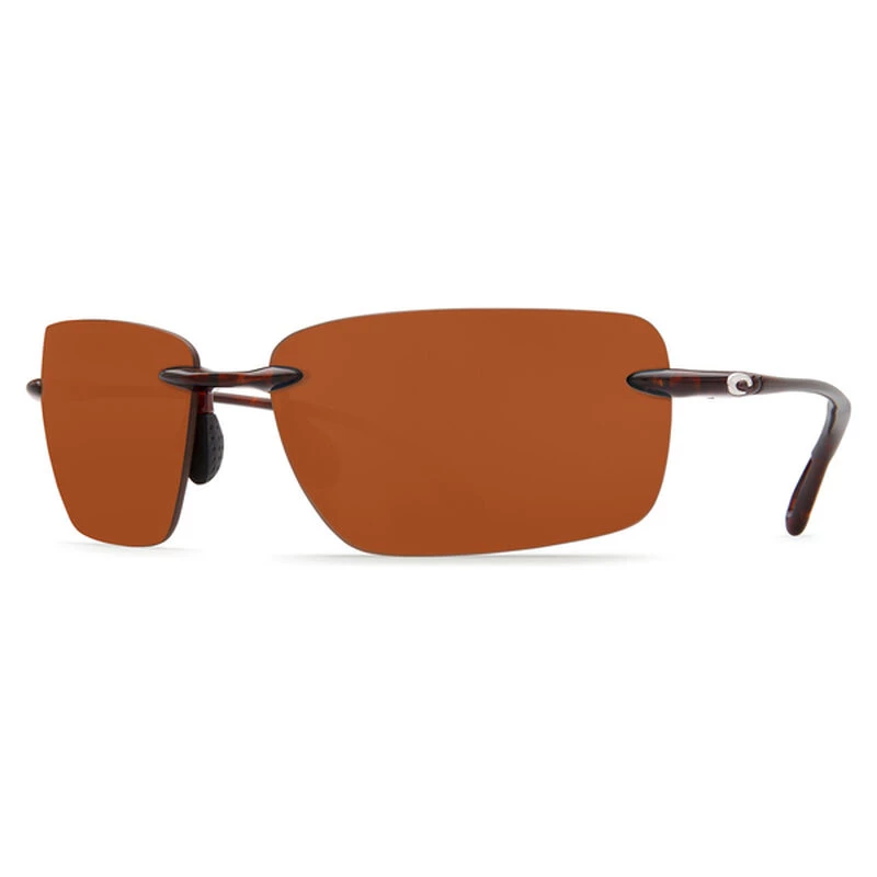 Gulf Shores, Alabama, is known for white sand beaches made almost entirely of grains of pure white quartz crystal washed down from the Appalachian Mountains during the Ice Age and for turquoise water. The extra-large rimless frames with rectangular lenses on Costa’s Gulf Shore Sunglasses won’t interfere with watching dolphins trace their way along this beautiful coast. Their lightweight TR-90 nylon frames are made with resin from the castor plant. This bio-based resin offers a 70% reduction in emissions over petroleum-based resin, helping to reduce the overall carbon footprint. The 100% polarized, scratch-resistant 580P polycarbonate lenses eliminate reflective glare and reduce eye strain. Hydrolite nose pads and leash-ready temple arms (leashes sold separately) are up to the task of stopping annoying slippage and securing your shades.