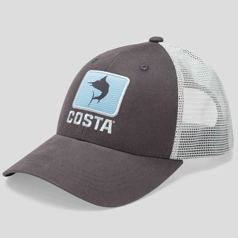 This 6-panel trucker hat is comfortable and stylish with its 100% cotton front and mesh back panels. The unique fish design on the woven front label keeps your love for fishing forefront. Imported.