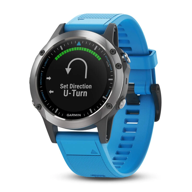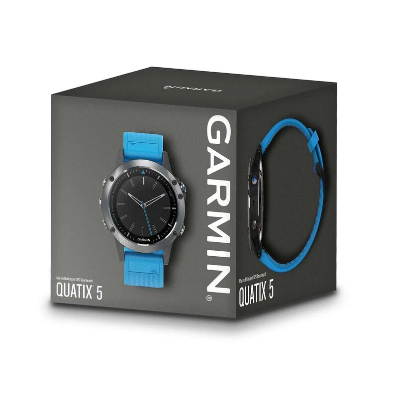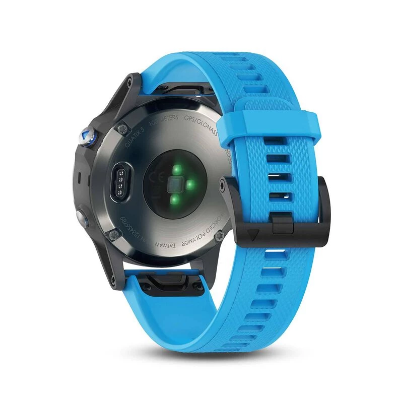 - quatix 5 watch with blue silicone QuickFit™ 22 watch band