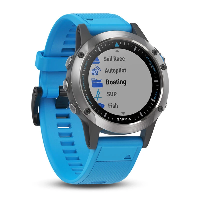 A quatix 5 watch isn’t just for sailing or powerboating. Its paddlesports functions allow you to track strokes, distance per stroke and cadence to create an efficiency score. It also provides surfing tides and customizable activity features. If water skiing, you can even check your boat speed with a quick glance. On land, it becomes a multisport watch for running, hiking, golfing and more. It even has an activity tracking feature that counts steps taken, estimates calories burned and floors climbed. When the day is done, it will track your sleep, monitoring your total sleep and periods of movement or restful sleep.