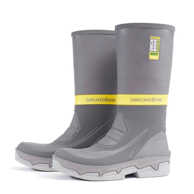 As with all Grundens Deck-Boss Boots, Grundens is proud to manufacture them in a state-of-art factory in the Pacific Northwest. The ASTM certified Safety Toe version of the Deck-Boss Boot features a full length steel shank built under the footbed to provide puncture resistance and a full coverage steel toe cap offers complete protection in any work environment.