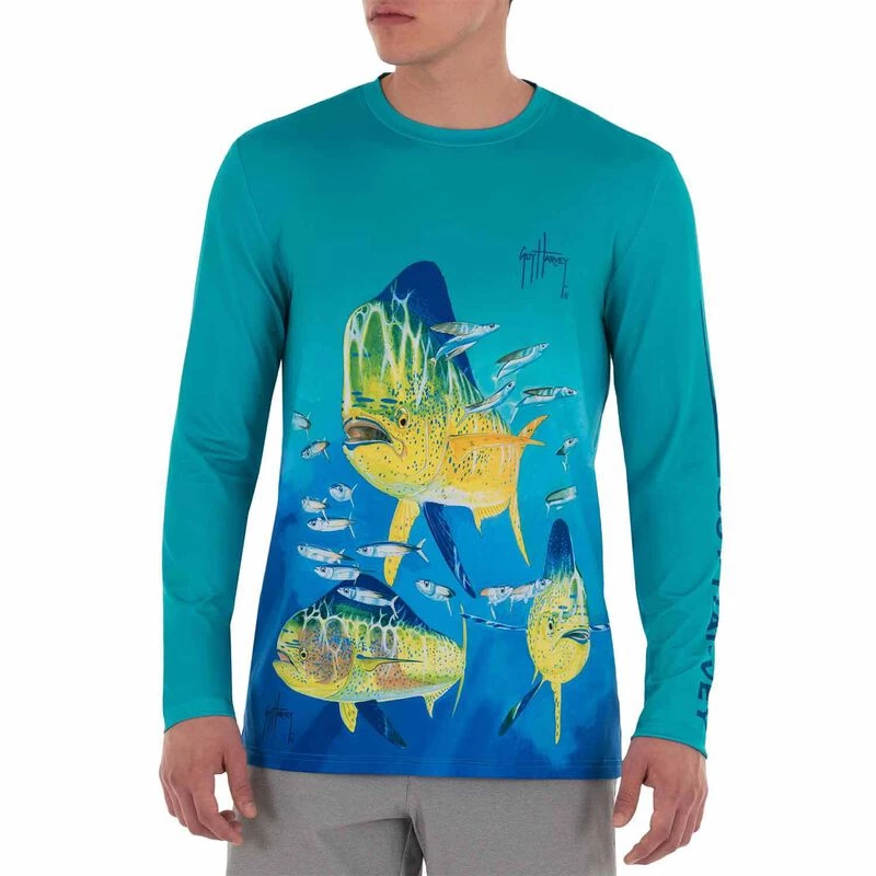 You’ll be able to stay out on the sea or lake longer in this Guy Harvey top that provides UPF 50 sun protection. It depicts on of Guy’s original photography images of a Marlin in action in the authentic detail he’s known for on a wraparound print. It is made of 95% polyester/5% spandex fabric, that contains REPREVE, the most trusted branded performance fiber made from recycled materials, including plastic bottles. To keep you cool and dry it also has moisture wicking properties. A tagless label provides added comfort. Machine washable. Help Save our Oceans! Your purchase supports the health of our oceans and marine life. A portion of the proceeds from the sale of all official Guy Harvey merchandise benefits the Guy Harvey Ocean Foundation, which conducts scientific research and hosts educational programs to help save our seas. Imported.