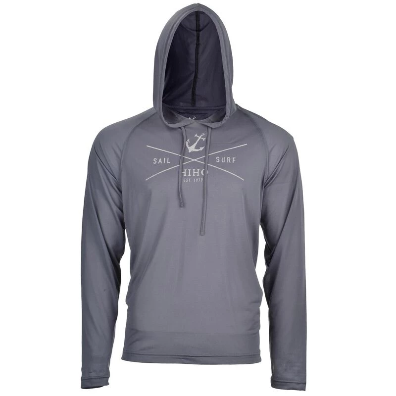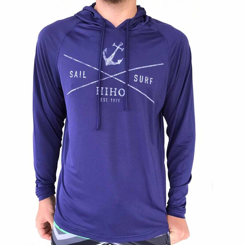Men’s UPF50 long sleeved hooded top with a drawstring offering excellent sun protection. Lightweight and comfortable with raglan sleeves offering a roomy fit, the Sail & Surf graphic is printed on the front. Perfect for many outdoor activities including fishing and sailing, but its quick drying feature particularly lends itself to anything on or near the water. Machine washable and quick drying. Imported.