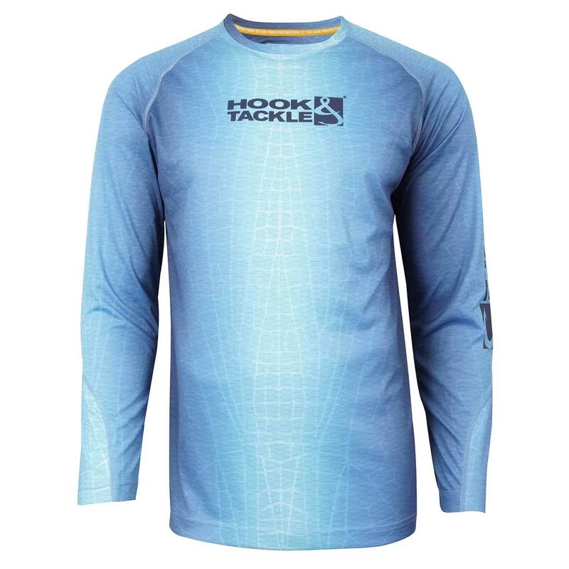 Protect yourself from the sun’s harmful UV rays with the Hook & Tackle Fractal Skin Shirt. Proprietary Solar System UPF 50+ rated fabric incorporates the latest sun protection technology. Wicked Dry & Cool fabric technology wicks moisture from the skin to enhance your comfort level. Designed with radial sleeves to allow you a full range of movement when casting or reeling in.