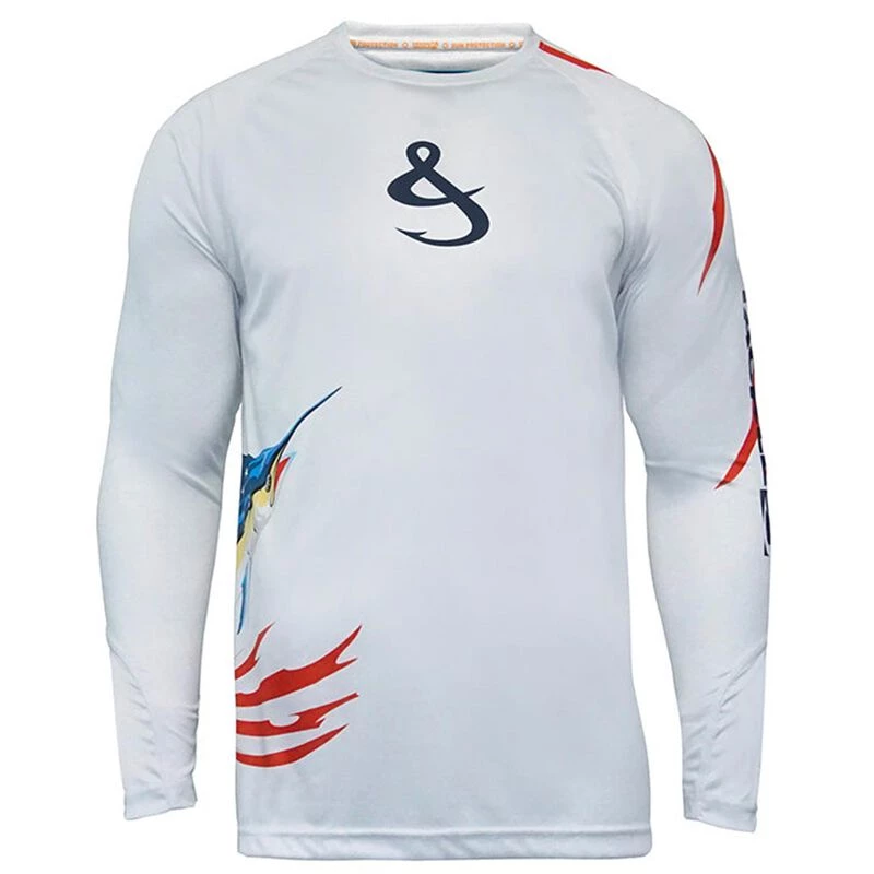 Protect yourself from the sun’s harmful UV rays with the Hook & Tackle Sailfish Americana Shirt. Proprietary Solar System fabric technology blocks 97%+ of the sun’s UVA and UVB radiation. Wicked Dry & Cool fabric technology wicks moisture from the skin to enhance your comfort level. Designed with radial sleeves to allow you a full range of movement when casting or reeling in.