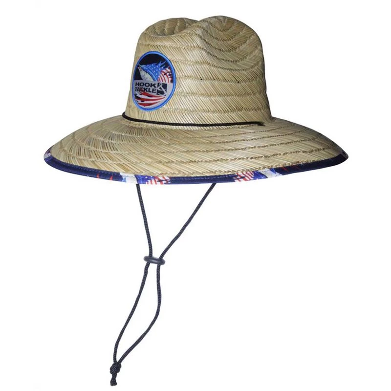 The Hook & Tackle® Sails & Stripes Lifeguard stretch fit fishing hat will stop the sun’s rays right in their tracks. It features a high quality straw, a sailfish with an American flag and the Hook & Tackle logo on a front woven patch and printed under the brim and interior crown, AEGIS® treated head band prohibits bacterial growth and unpleasant odors, anti-glare under-brim and adjustable chin strap. Size M-L fits head sizes 23″ – 23 1/2″ and L-XL fits head sizes 23 3/4″ – 24 1/8″. Imported.