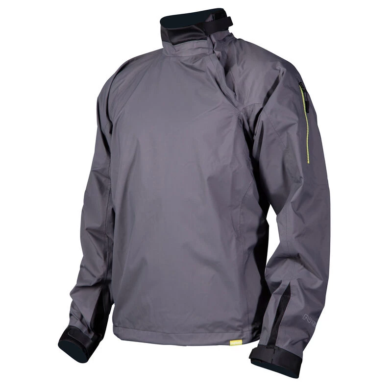 The waterproof, windproof NRS Men’s Endurance Jacket lets you paddle in comfort, even in windy, splashy conditions. Boaters looking for technical performance at a great price will love this paddling top. Waterproof, breathable HyproTex™ 2.5 fabric lets excess heat and moisture escape, keeping you comfortable. Action-cut design gives you room for layering underneath and won’t restrict your paddling motion. Adjustable urethane neck and wrist closures help keep out water. The waist secures with an adjustable drawcord, and silicone grip on the hem helps keep it in place. A convenient splashproof sleeve pocket keeps necessities close at hand.