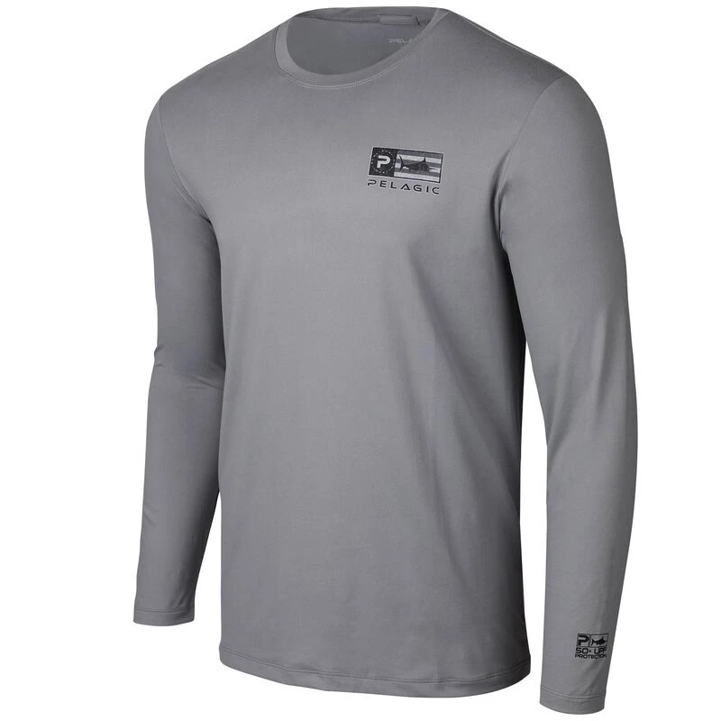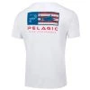 Rock the PELAGIC name bold and proud with the Americamo icon logo fishing t-shirt. Imported.