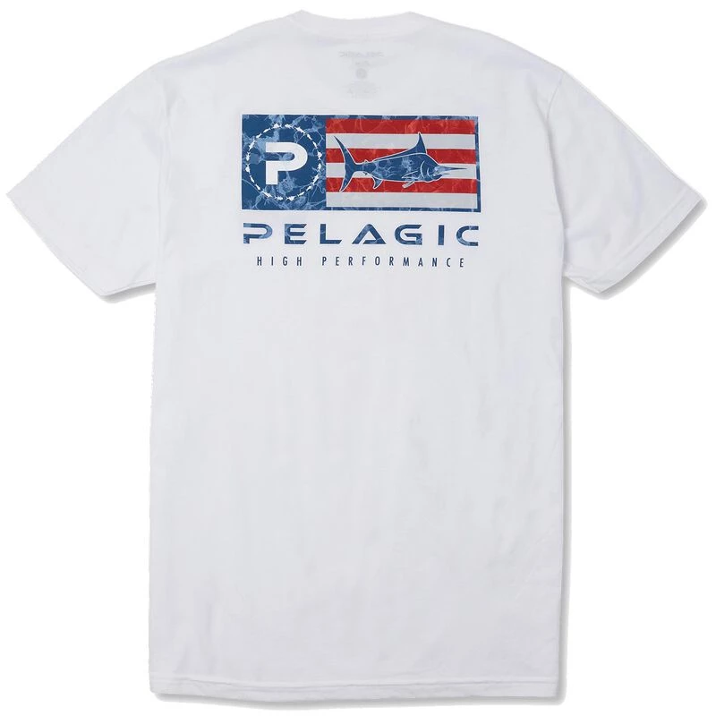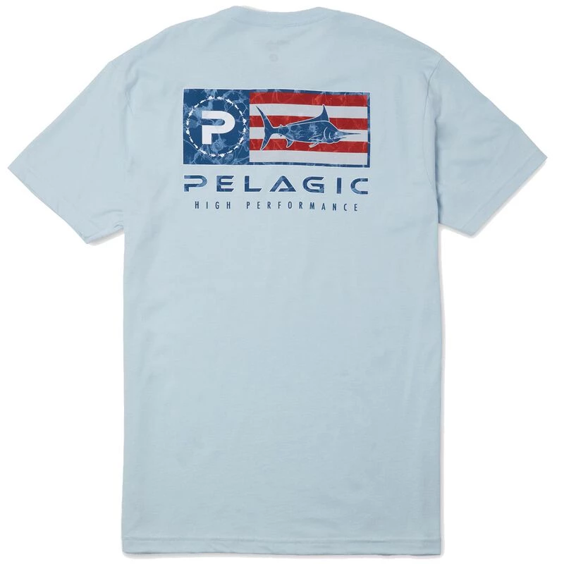 Rock the PELAGIC name bold and proud with the Americamo icon logo fishing t-shirt. Imported.