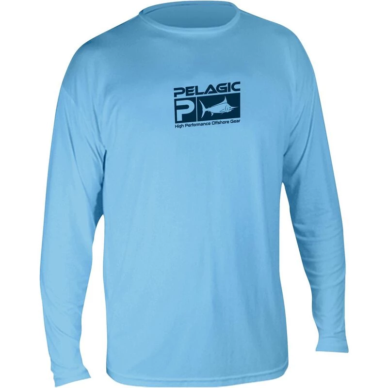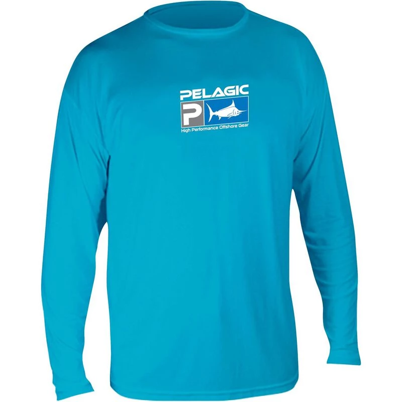 The Pelagic AquaTek Tech Shirt provides performance-minded sportsmen around the globe, with the comfort and protection needed from the harsh elements of the marine environment. Offering a UPF 50+ barrier from the sun’s harmful and damaging Ultra Violet rays, this shirt is super-lightweight, breathable and actually cools you down as things heat up with moisture wicking properties and ventilated AirFlow Technology. Complete with a durable water repellency (DWR) treatment and stain release technology that beads up and dumps off liquids, it’s no wonder that the world’s top professional captains choose the AquaTek as their first line of defense both on and off the water. Imported.