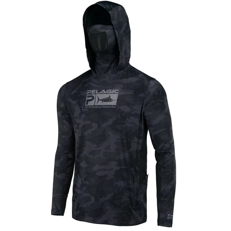 Part sunshirt, part hoody, part face shield – the Pelagic Exo-Tech is the ultimate force-field for your skin packed into a multi-functional long sleeve shirt to protect you from the sun’s harmful and damaging UV rays. Packed to the gills with features, this tech shirt has everything you would ever need for a long day on the water. Features include a built-in mesh face shield, a vented mesh hoodie, and a large front secure zipper storage pocket. Imported.