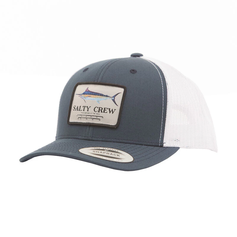 Stay cool and covered in this structured six-panel trucker hat with woven damask patch and a retro vibe. Adjustable snapback design gives you a custom fit every time. Cotton blend. Imported.