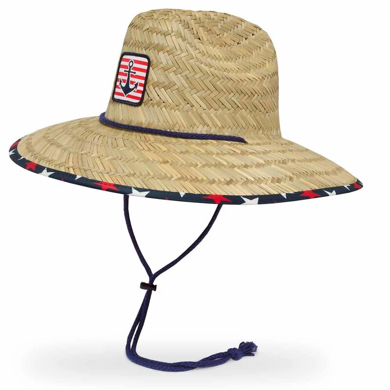 Our classic lifeguard hat with an Americana flare for festive celebrations on the water. A flag inspired patch and novelty underbrim print. UPF 50+ brim and top-of-crown liner ensure maximum shade. Imported.
